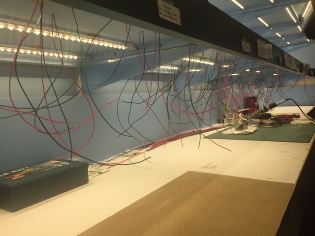 The work involved extending the command bus wires around the underside of the lower deck, connecting them to several LA152 fascia plates in front of Chetwynd Yard, and mounting new throttle pockets beside the fascia plates.