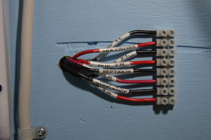 The red wires are the returns from the reset switches on the Power Management Panel, and the black wire are coming directly from the circuit breaker panel.
