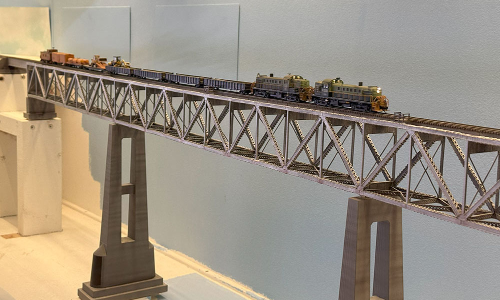 My attention will now turn to further preparations for regular operations, and replacing temporary bridge tracks with Micro Engineering bridge flex track. I have also been working on some additions to the freight car fleet.