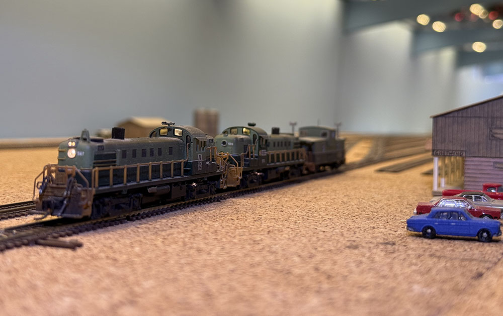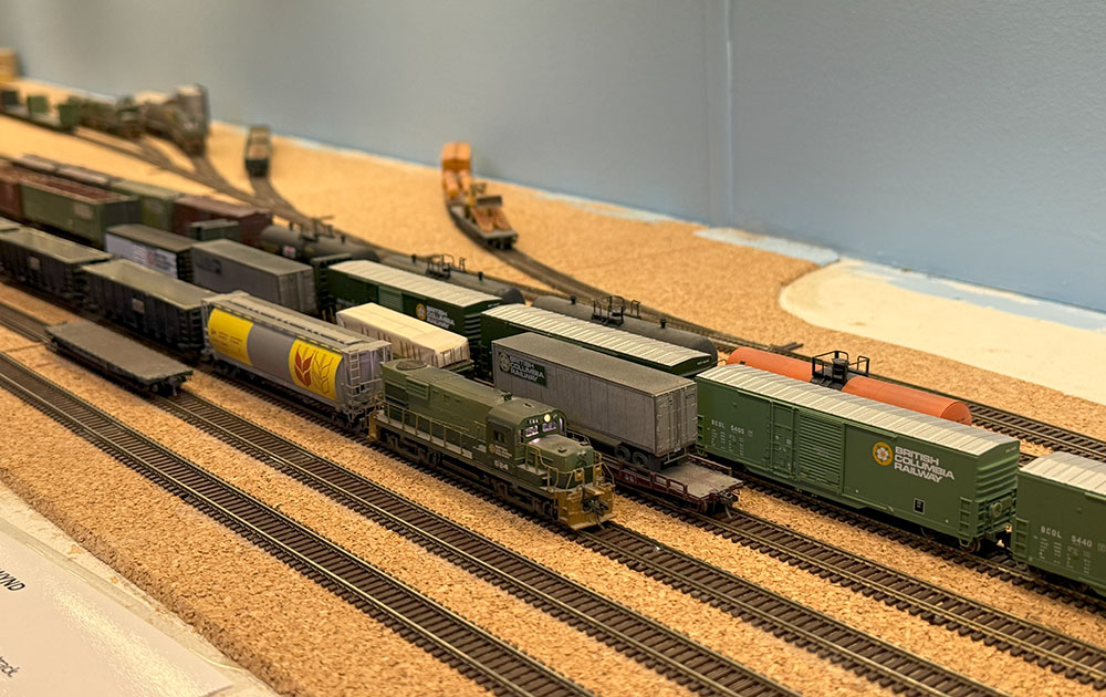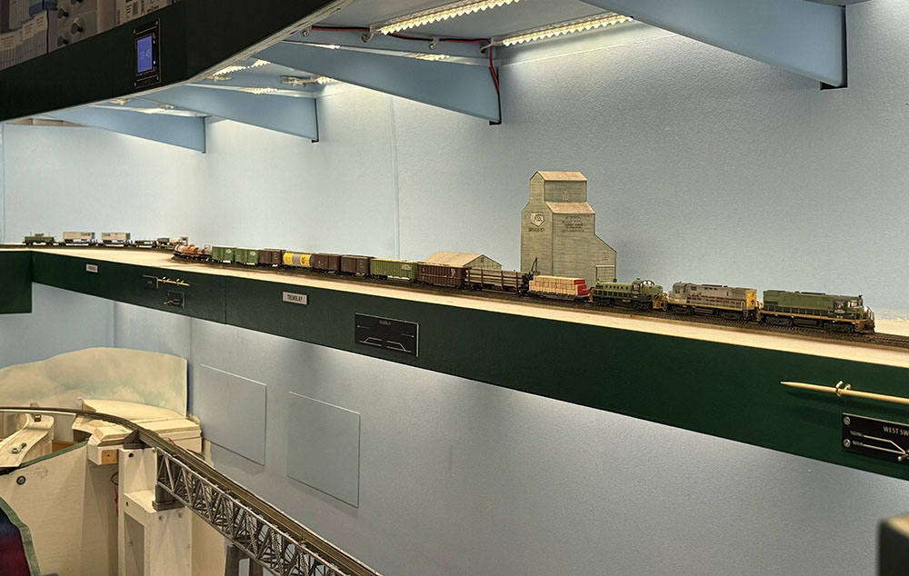 Trains are running over the layout once again after several days of track cleaning, vacuuming and wheel cleaning. Several op sessions have been scheduled in advance of hosting one for our upcoming Railway Modellers Meet in May 2025. Here, Work Extra 581 is seen departing Septimus for Chetwynd after a test run on the Fort St. John Subdivision.